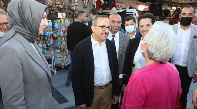 Çeşme Kalesi çarşı esnafını ziyaret ederek sorunlarını dinleyen AK Parti İzmir İl Başkanı Kerem Ali Sürekli, devletin ilçeye yapılan yatırımlarını anlattı. Kısa bir süre önce, Kültür ve Turizm Bakanı Mehmet Nuri Ersoy’un Çeşme’yi uçuracak dev proje için İzmir’e geldiğini hatırlatan Sürekli, sözlerine şu ifadelerle devam etti; “Sayın Bakanımız; Büyük Çeşme Projesi’ni hayata geçirebilmek için büyük çaba harcıyor. Belediyeleri, STK’ları içine alan bir istişare sürecinin ardından gerekli revizyonlar yapıldı. Düğmeye basmak için sabırsızlanıyoruz. 20 Milyar Dolarlık bu proje 100 bin insanımıza istihdam imkânı da sunacak. Doğayı ve çevreyi de koruyacak bu yatırım bölgenin önünü açacak.”