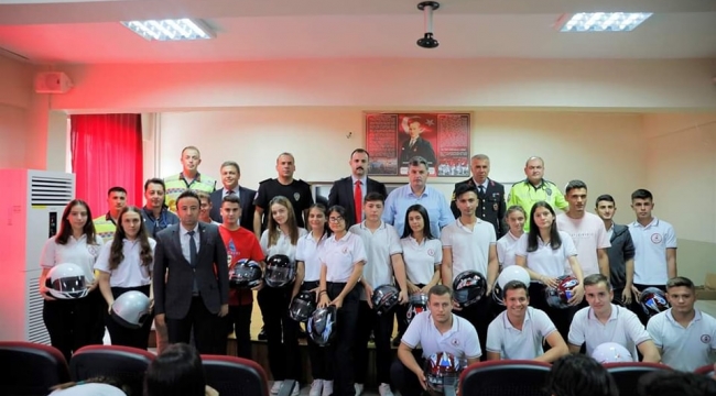 Kınık İlçe Jandarma Komutanlığı Trafik ekiplerince, 6. Hasat Festivali çerçevesinde gerçekleştirilen farkındalık etkinliğinde; trafik kazalarını en aza indirmek amacıyla Şehit Hakan Sağınç Anadolu Lisesi öğrencilerine; genel trafik kuralları, motosiklet için güvenlik ekipmanları ve kask kullanımı, güvenli bisiklet sürüşü ve kask kullanımı ve trafik kazalarından korunma eğitimleri verildi. Verilen eğitimden duydukları memnuniyeti dile getiren öğrenciler “İlçede her kesime olduğu gibi bizlere de bu şekilde değer verilmesi bizi çok mutlu etti. Bugünü ve trafikte güvenliği sürekli hatırlamak için Sadık başkanımızın hediye ettiği kaskı hep saklayacağız.” dediler ve trafikte kurallara uyacaklarına söz verdiler.