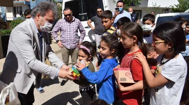 Bayramda da çocukları mutlu etmek istediklerini söyleyen Başkan İduğ,”Çocuklar bizim geleceğimiz. Onlara destek olmak ve mutlu etmekte görevimiz. Pandemi nedeniyle okullarına gidemeyen, evlerinde kapalı kalan ve sıkılan çocuklarımızın yüzünü güldürmek istedik. Bu nedenle oyuncak, oyun hamuru, boya, ve top gibi çeşitli hediyeler getirdik” diye konuştu.