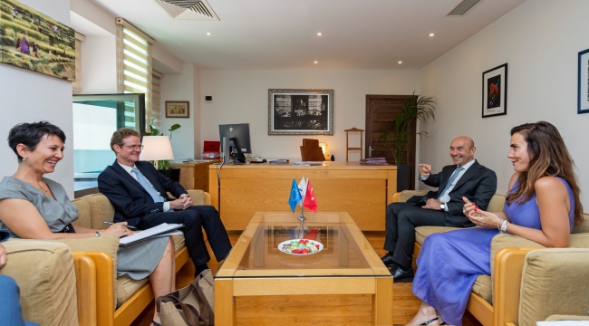 İzmir Büyükşehir Belediye Başkanı Tunç Soyer, Avrupa Birliği Türkiye Delegasyonu Başkanı Büyükelçi Nikolaus Meyer-Landrut ve beraberindeki heyeti makamında ağırladı.