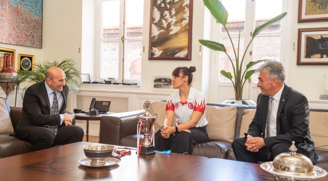 İzmir Büyükşehir Belediye Başkanı Tunç Soyer dövüş sporlarındaki 4 branşta başarıya imza atan sporcu Bilge Su Gürel’i ağırladı. Başkan Tunç Soyer, “Çok gurur duyduk. Gücümüz neye yeterse yanınızdayız” dedi.