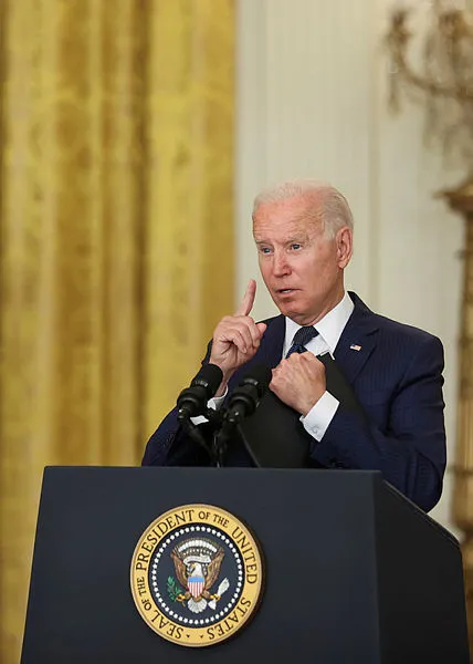 Afganistan'dan çıkış sürecinde yaşananlara ilişkin sorumluluğu üstlenip üstlenmediği sorulması üzerine Biden, son dönemde yaşananlara ilişkin sorumluluk aldığını ancak Taliban ile anlaşıp onlara çıkış tarihi verenin eski Başkan Donald Trump olduğunu savundu.
