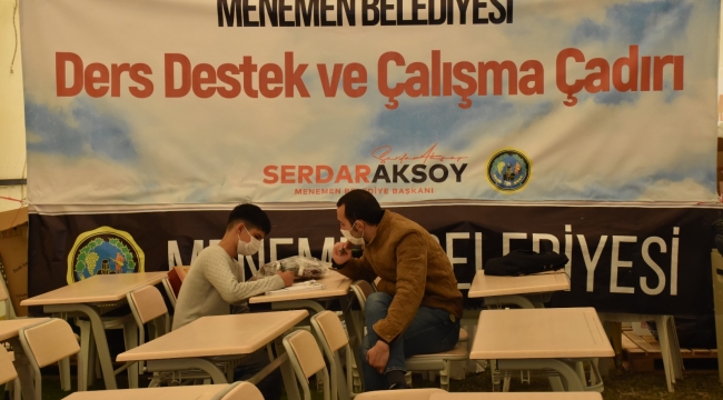 Deprem felaketinden sonra Menemen Belediyesi olarak Menemenliler ve depremzede hemşerileri için ellerinden gelen yardımları yaptıklarını, ancak önceliklerinin çocuklar olduğunu belirten Menemen Belediye Başkanı Serdar Aksoy, “Çocuklarımızın bu süreçten en az yara alarak geçmeleri için elimizden geleni yapıyoruz. Aşık Veysel Rekreasyon Alanı’na önce Çocuk Oyun Çadırı kurduk, şimdi ise Ders Destek ve Çalışma Çadırı. Minik yavrularımızın derslerinden geri kalmamaları, bu süreç geçtikten sonra eğitim hayatlarında zorluk yaşamamaları için Menemen Belediyesi öğretmenleri ellerinden geleni yapacaklar. Her şey çocuklarımız için…” dedi.