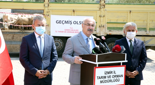 Milletimizin her zor zamanda kenetlenmeyi başardığına vurgu yapan Vali Köşger, “Her zaman söylüyorum; büyük bir milletiz. Zaman zaman kendi içimizde birtakım tartışmalar, birtakım çekişmeler yaşıyoruz ama ülkenin geleceği, vatanın bekası ile ilgili sıkıntılar olduğunda, bir araya gelmesini bilen ve orada bir duruş sergilenmesi gerektiğinde o duruşu sergileyen bir milletiz. İhtiyaç duyulduğunda hemen yekvücut olup birimizin acısını gidermek için birbirimizi sarıp sarmalayan, yaralarımızı tedavi eden ve ayağa kalkmasını bilen bir milletiz. Bu noktada İzmir’imiz de çok güzel bir örnek gösterdi. Antalya Manavgat'ta ahırları yanan vatandaşlarımızın zararlarını devletimiz karşılıyor. Ancak İzmirli hemşehrilerimiz de bu bölgelere yardım etmek istedi. İl Tarım ve Orman Müdürlüğümüz de bu talebi organize etti. Örneğin; bir hayırseverimiz 59 küçükbaş hayvanı Bergama’dan, ayrıca Bayındır’dan, Kınık’tan, Ödemiş’ten, Beydağ’dan başka vatandaşlarımız, büyükbaş ve küçükbaş hayvan hibe etti. Manavgat ve Muğla’ya gönderilmek üzere bugün burada 59 küçükbaş hayvanı sembolik olarak bir törenle yola çıkarıyoruz. Yaklaşık 50 ton yem ile birlikte 84 büyükbaş hayvan da yola çıkacak. İhtiyaç duyuldukça yine buna benzer yardımlar devam edecek. Her şeyden önce İzmirli hemşehrilerimize, hayırseverlerimize çok teşekkür ediyor, milletimiz adına şükranlarımı sunuyorum.” şeklinde konuştu.