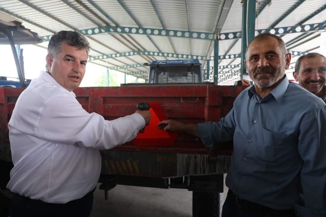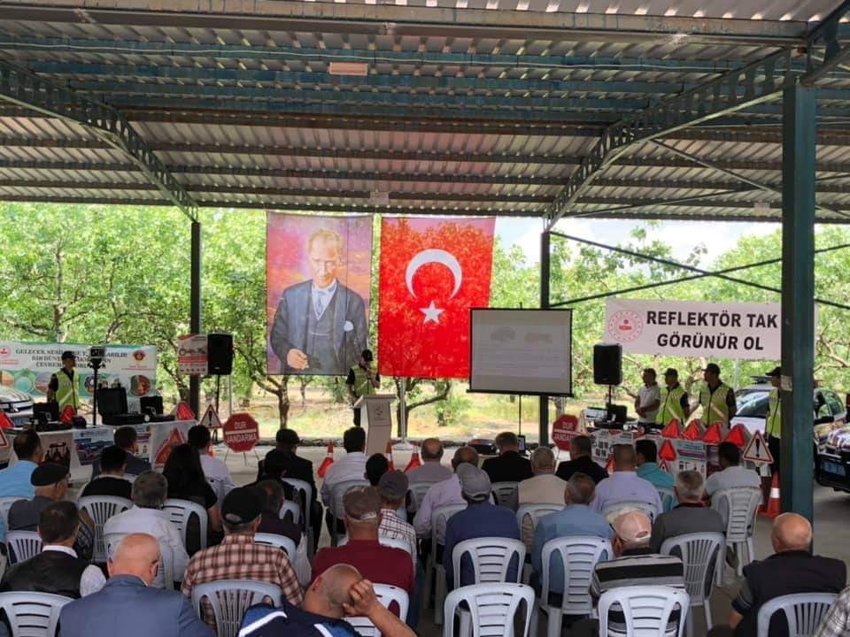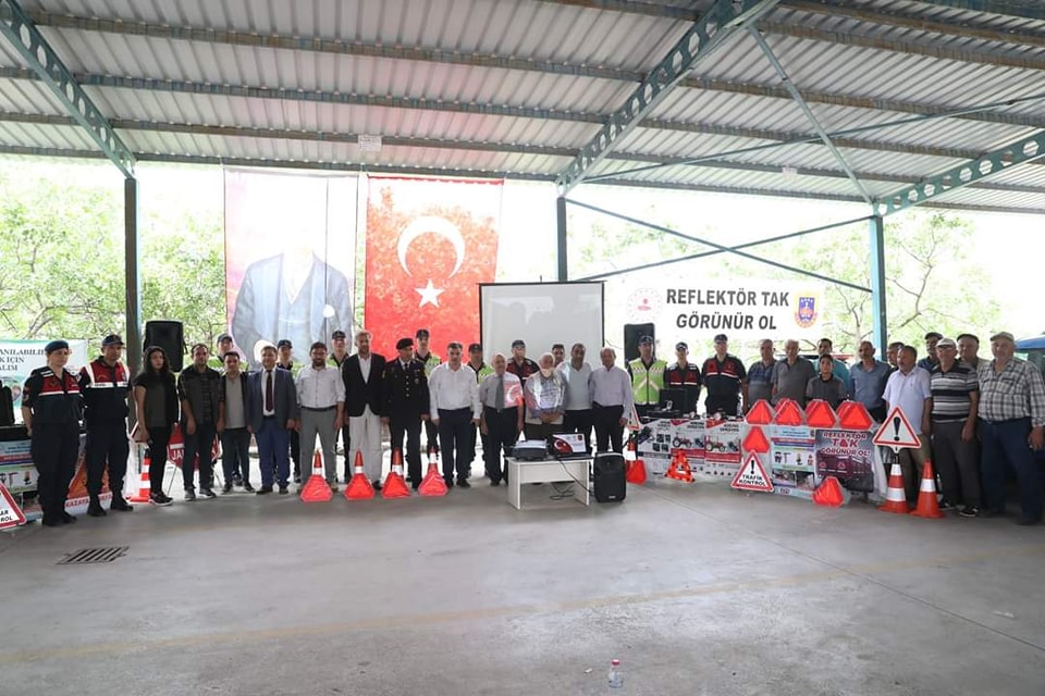 Trafik kazalarının önüne geçmek için başlatılan “Reflektör Tak, Görünür Ol” projesi kapsamında, Kınık’ta Traktör sürücülerine reflektör dağıtıldı.
