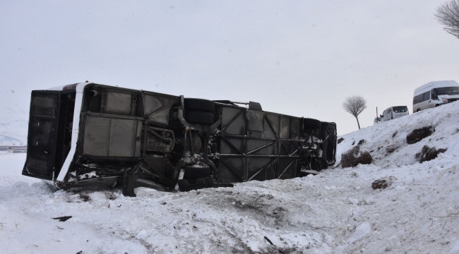 BİTLİS'te yoldaki buzlanma nedeniyle kontrolden çıkıp şarampole devrilen yolcu otobüsündeki 15 kişi yaralandı.